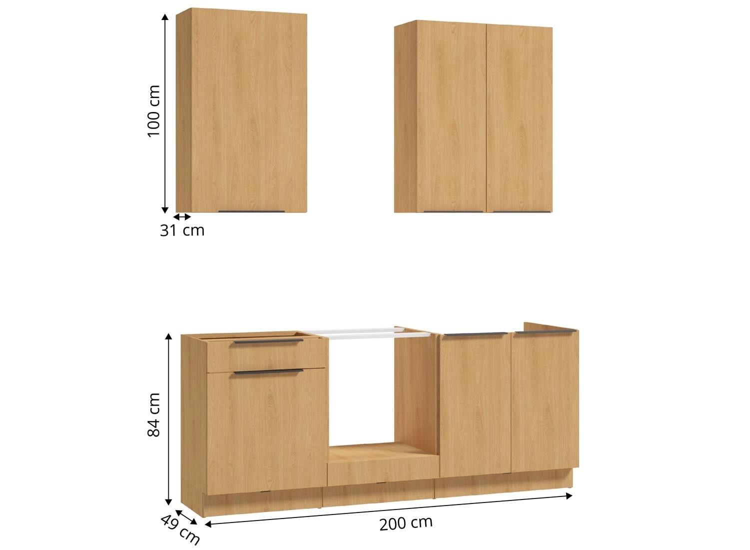 Wysokość szafek dolnych (bez blatu): 84 cm