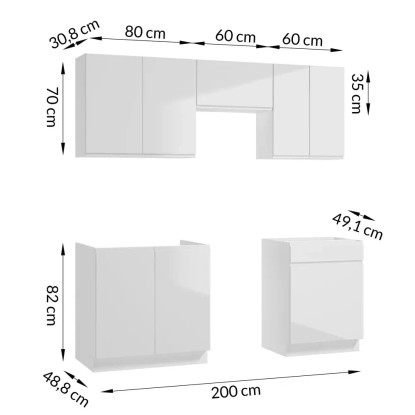 Defra Zestaw mebli kuchennych PARMA biały 200 cm 5 el.