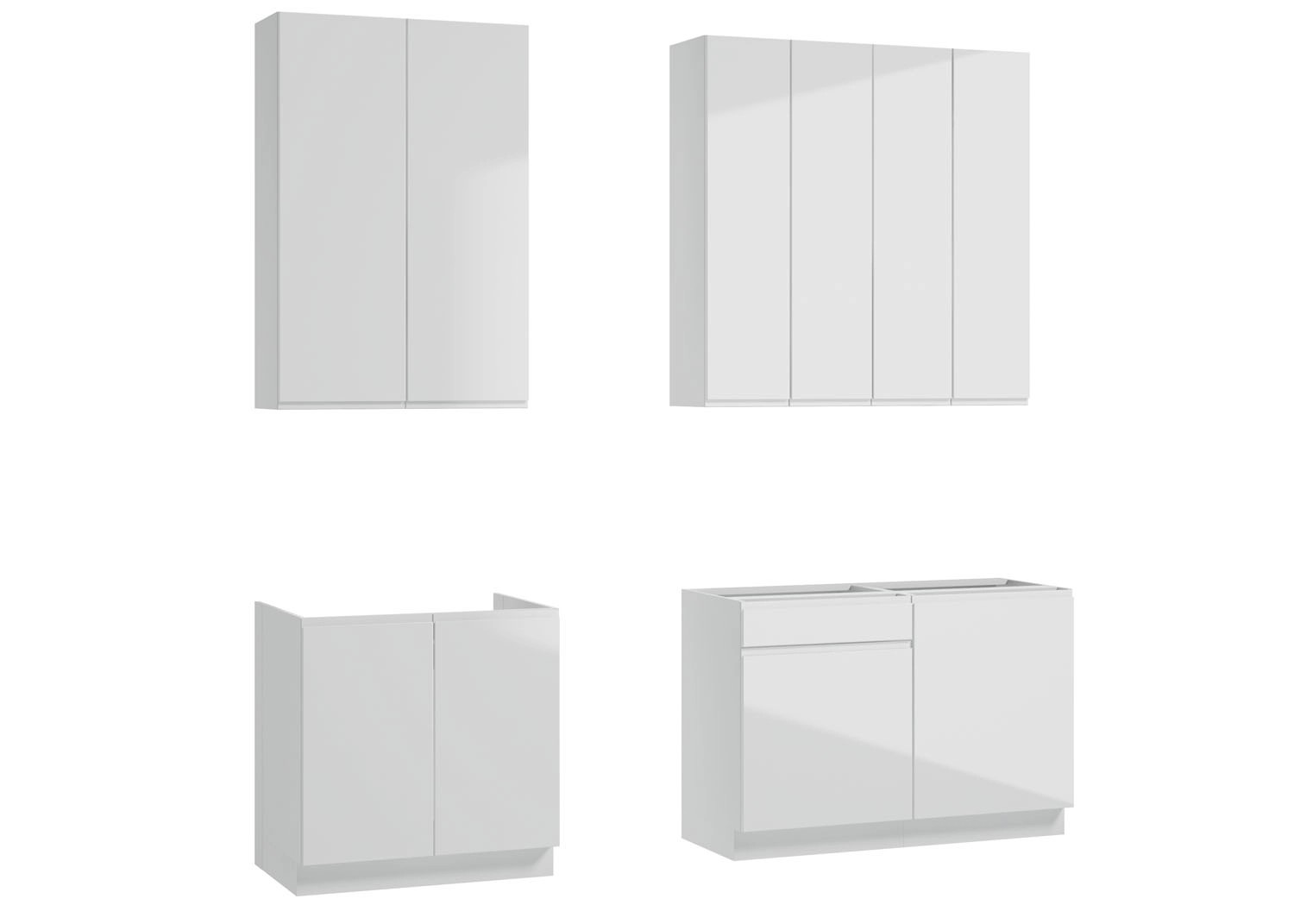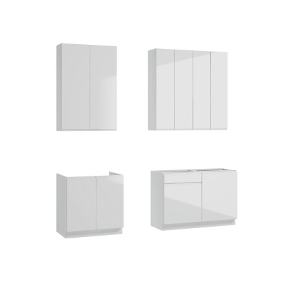 Czysta forma, minimalistyczny styl i ponadczasowa elegancja - to najważniejsze cechy zestawu mebli kuchennych z kolekcji Parma XL. Ten wysokiej jakości komplet składa się z dwóch szafek górnych wiszących z dwojgiem drzwi (szer. 60 cm), szafki górnej wiszącej z dwojgiem drzwi (szer. 80 cm), szafki dolnej stojącej pod zlewozmywak (z dwojgiem drzwi, do zabudowy pod blatem, szer. 80 cm) i dwóch szafek dolnych stojących (do zabudowy pod blatem, szer. 60 cm).