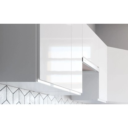 W szufladzie szafki dolnej zastosowano prowadnicę z pełnym wysuwem, dzięki której szuflada wysuwa się na pełną głębokość, umożliwiając łatwy dostęp do całości wnętrza. Szufladę wzmocniono konstrukcją w postaci metalowych boków. Dzięki temu możesz w niej przechowywać przedmioty ważące do 35 kg.