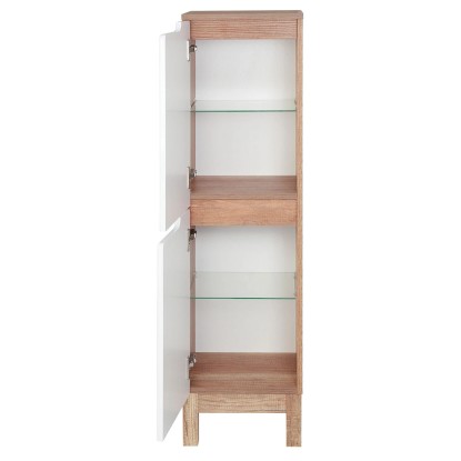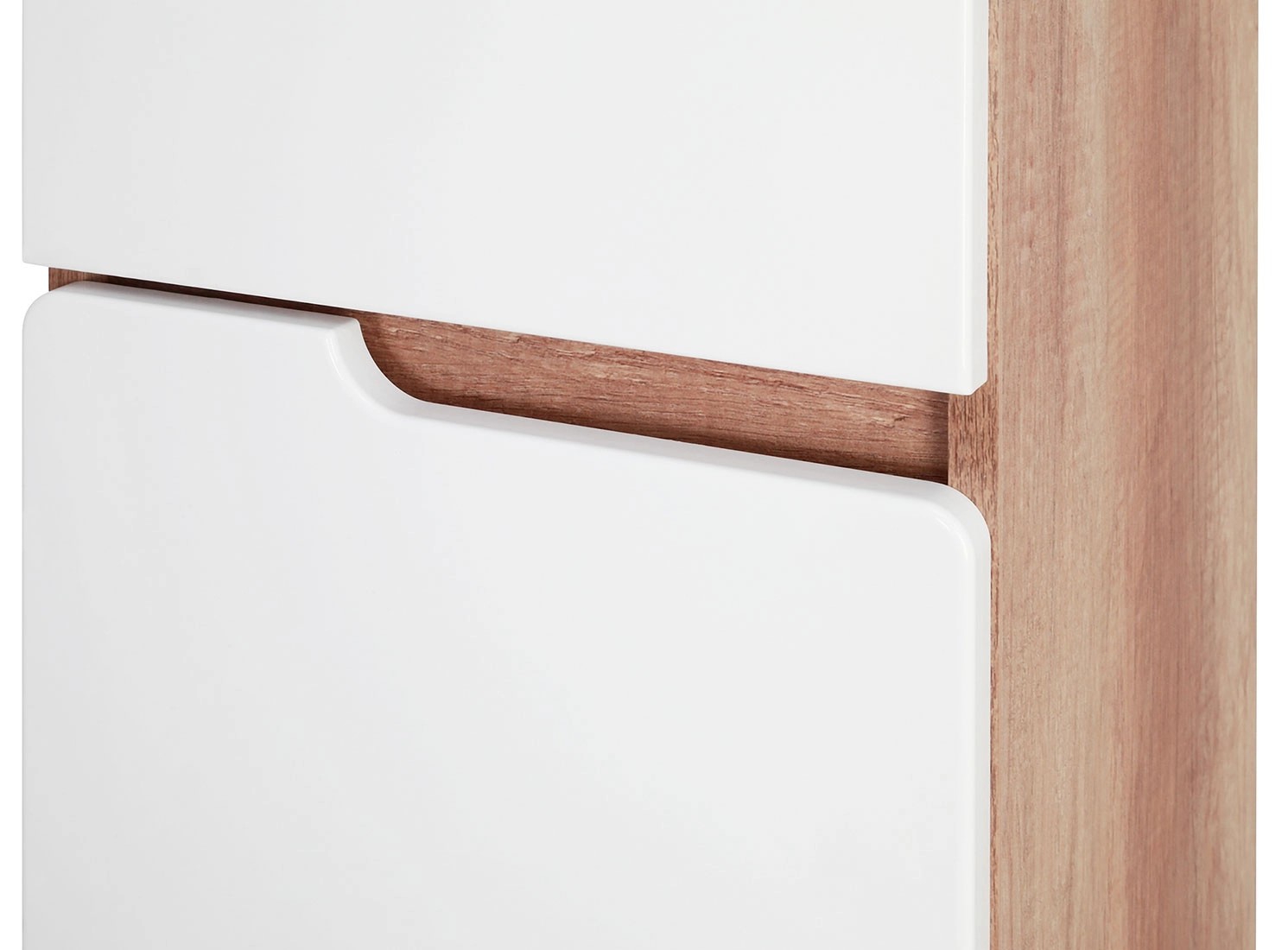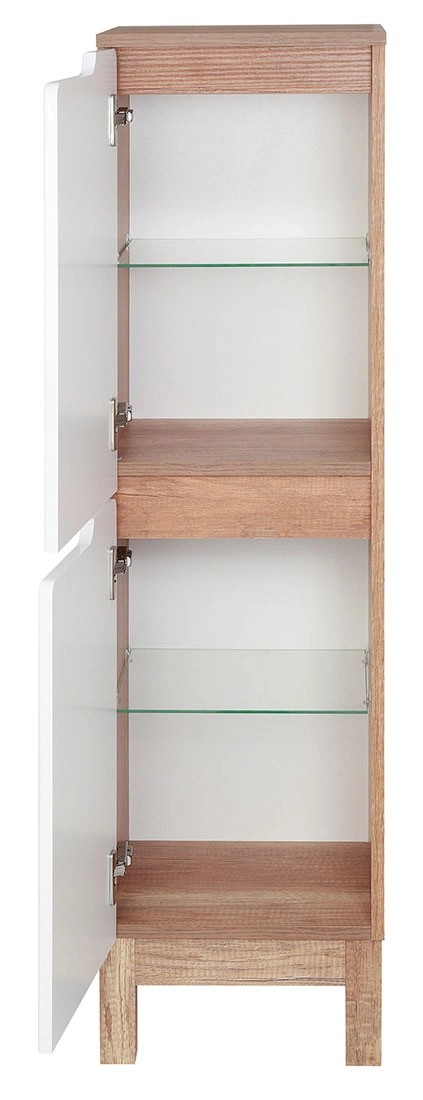 Półsłupek łazienkowy Diana firmy Astor to eleganckie połączenie klasyki i nowoczesności. Wykonany został z wysokiej jakości płyty wiórowej, prezentuje klasyczny wygląd, przypominający naturalny odcień drewna, co nadaje wnętrzu ciepła i stylowego charakteru. Subtelne, frezowane uchwyty ułatwiają obsługę, jednocześnie podkreślając finezję całej kompozycji.