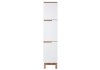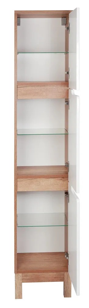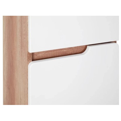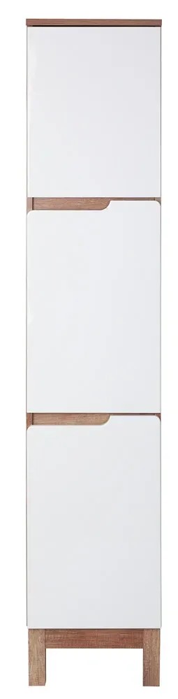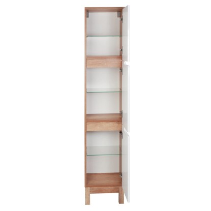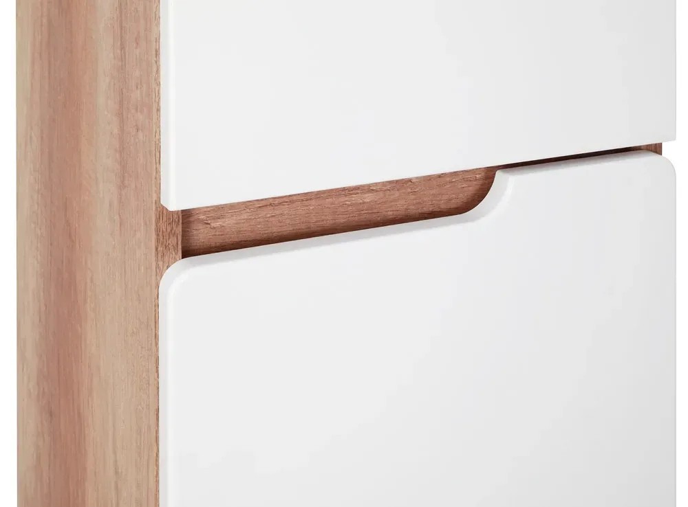 Słupek łazienkowy Diana firmy Astor to eleganckie połączenie klasyki i nowoczesności. Wykonany został z wysokiej jakości płyty wiórowej, prezentuje klasyczny wygląd, przypominający naturalny odcień drewna, co nadaje wnętrzu ciepła i stylowego charakteru. Subtelne, frezowane uchwyty ułatwiają obsługę, jednocześnie podkreślając finezję całej kompozycji.