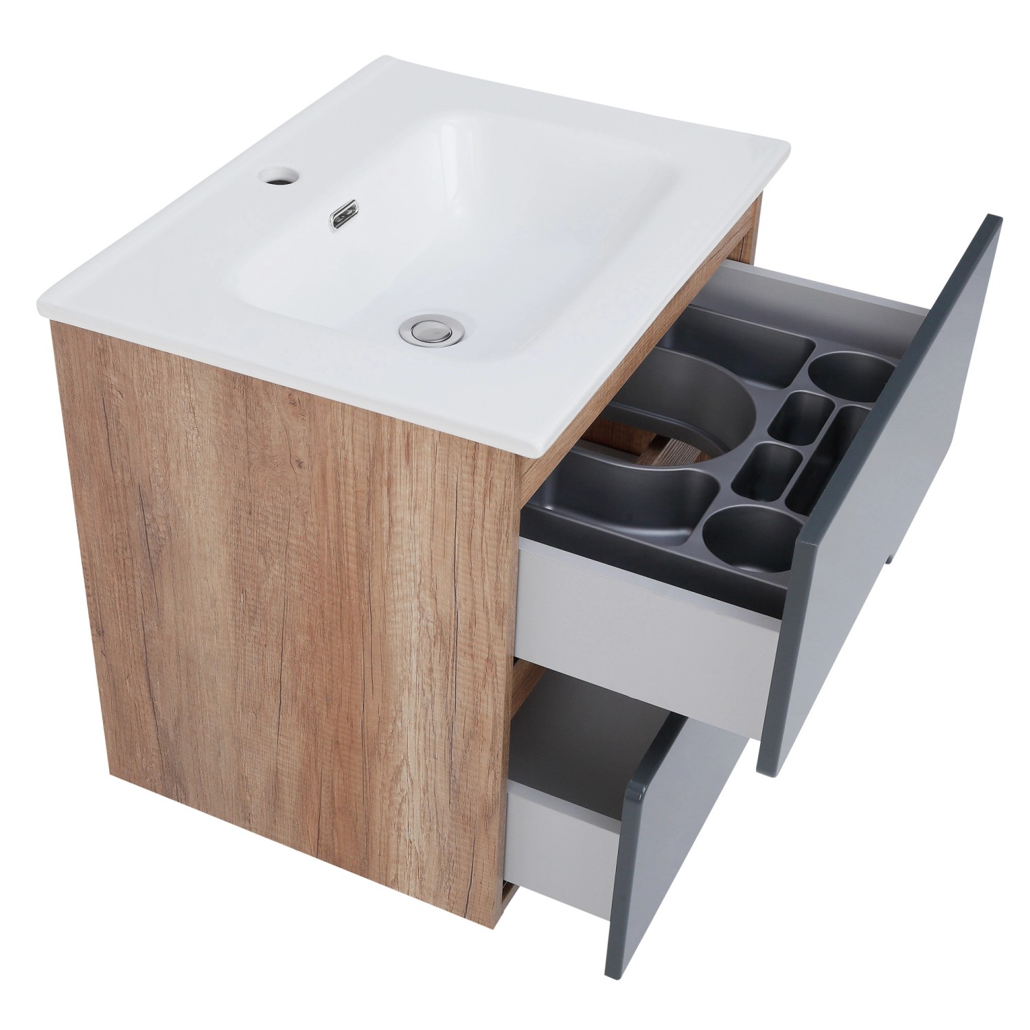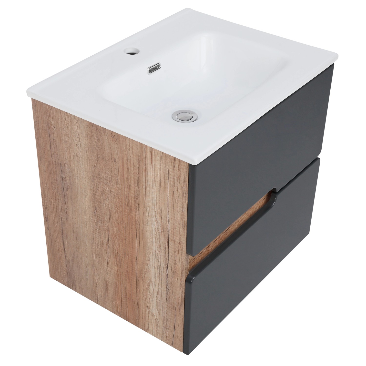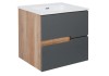Szafka pod umywalkę Spectra, firmy Astor, to doskonały dodatek do każdej łazienki. Odmieni wnętrze, nadając mu nowoczesny i elegancki charakter. Korpus wykonano z wytrzymałej, melaminowanej płyty wiórowej o subtelnym odcieniu country, dzięki czemu łazienka stanie się bardziej ciepła i przytulna. Fronty zaś powstały z płyty MDF w folii w wytwornym, antracytowym kolorze.