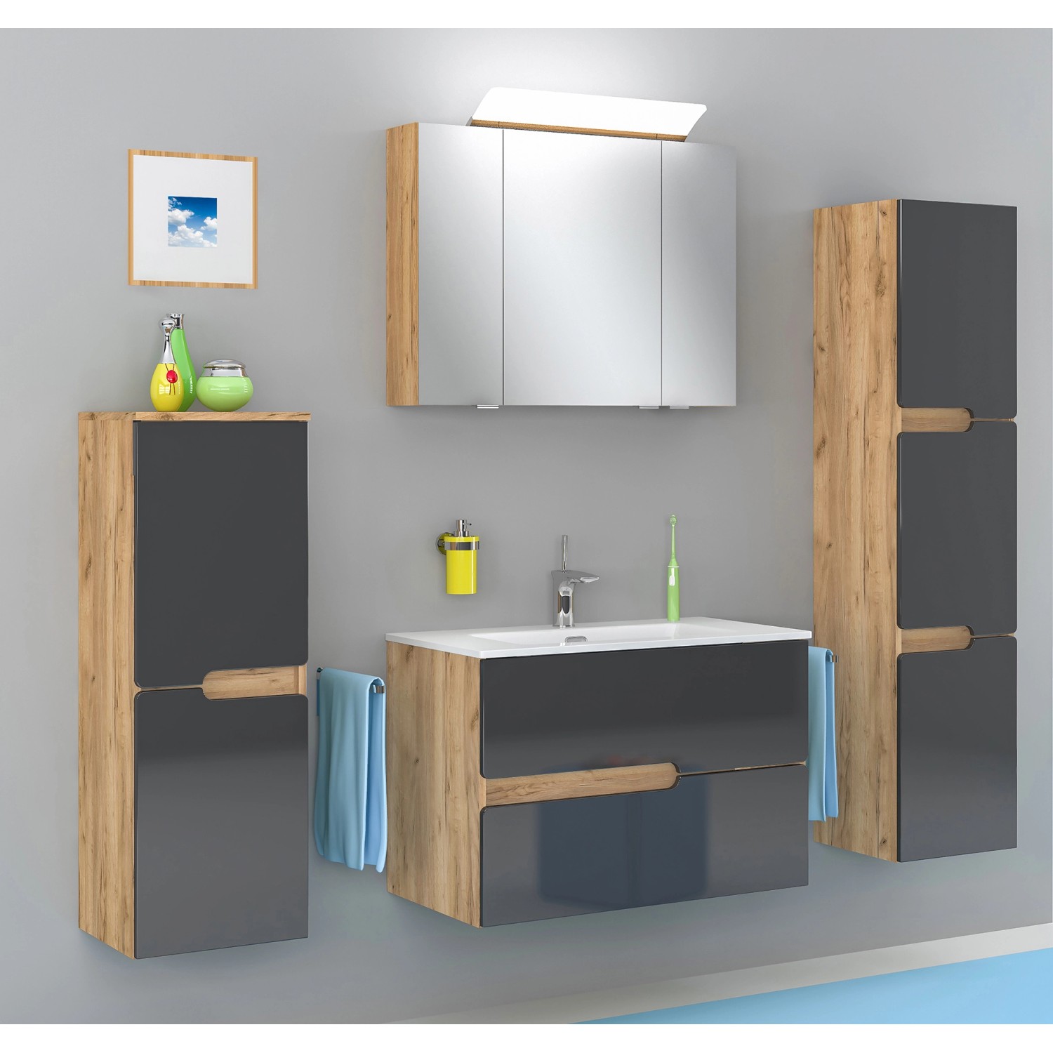 Do szafki dedykowana jest umywalka meblowa Spectra, która łączy w sobie estetykę wykonania i funkcjonalność. Zaprojektowana została zgodnie z trendami obowiązującymi w wystroju wnętrz łazienkowych, stanowi elegancki i praktyczny element wyposażenia. Znajdziesz ją tutaj. Dostępna jest w trzech szerokościach - 60, 80 i 100 cm. Umywalka nie wchodzi w skład zestawu, należy zakupić ją oddzielnie.