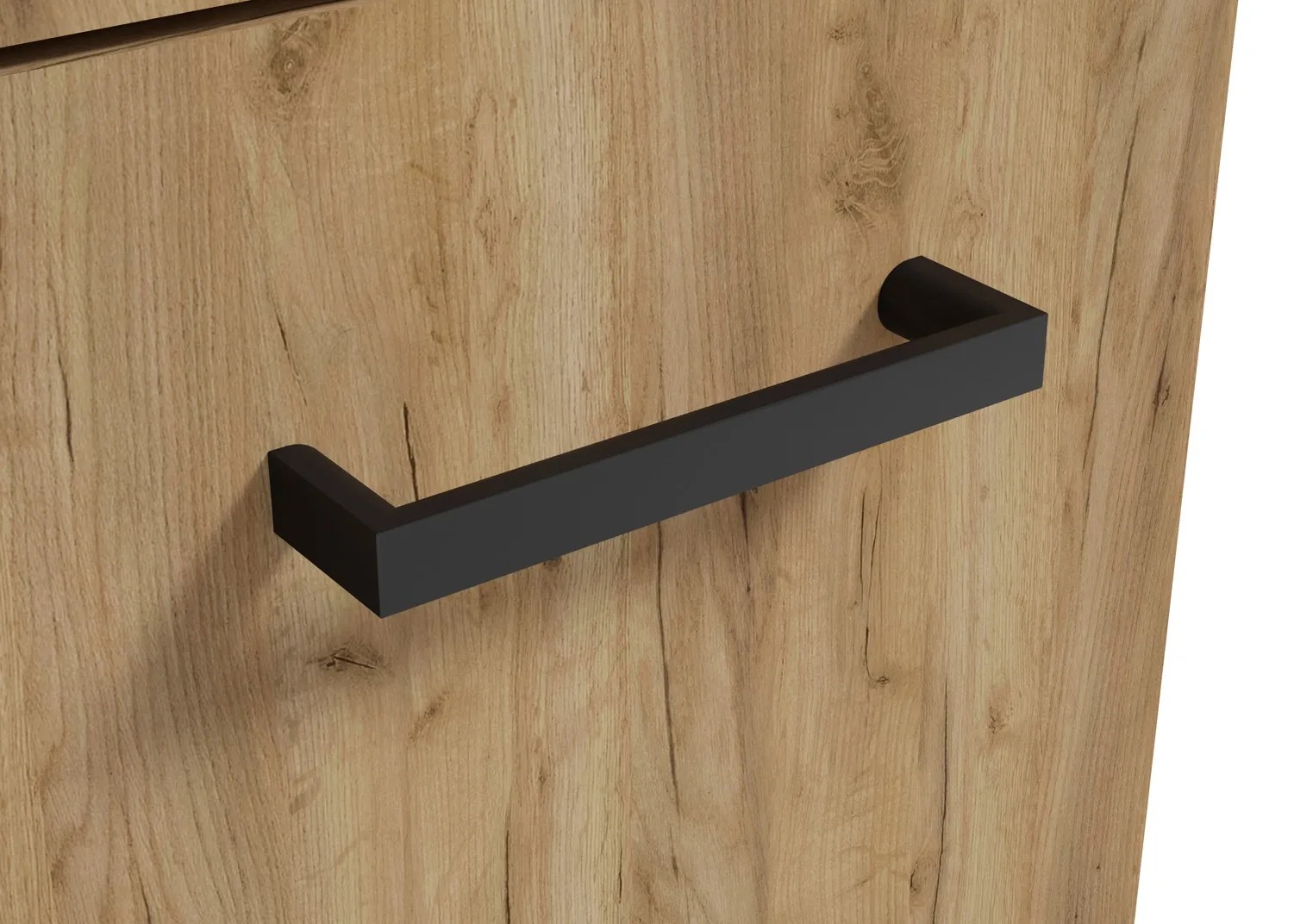 Fronty mebla są inspirowane wyglądem naturalnego dębu. W zestawie dołączone są dwupunktowe, metalowe uchwyty dwóch kolorach - czarnym (mat) i chrom (połysk). Dzięki temu szybko możesz dopasować szafkę do aranżacji pomieszczenia albo odświeżyć jego wygląd. Inspirowane drewnem meble pasują do wnętrza w każdym kolorze i stylu, są również ponadczasowe.