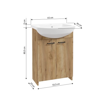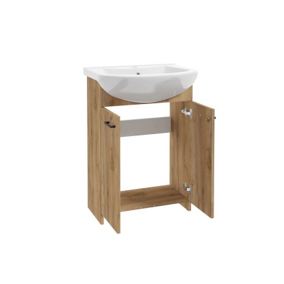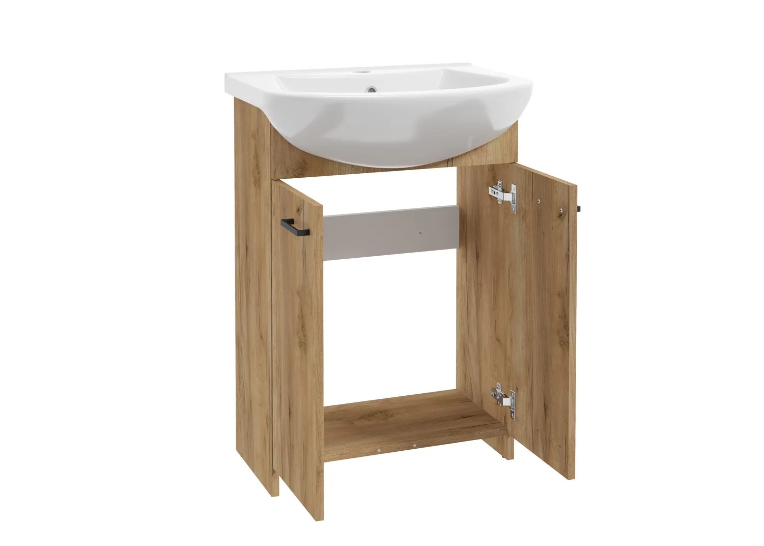 Defra Zestaw Szafka 2-Drzwiowa Z Umywalką Twins Dąb Złoty 60 Cm