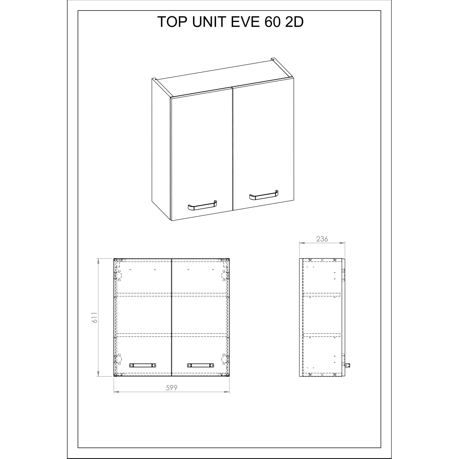 Meble łazienkowe z serii Eve charakteryzują się wysoką funkcjonalnością. Użyte materiały sprawiają, że powierzchnie mebli są wytrzymałe i łatwe do utrzymania w czystości. Fronty i korpus zostaly wykonane z płyty laminowanej, dodatkowo zabezpieczonej lakierem. Szafka posiada uchylne drzwi i lekką konstrukcję.