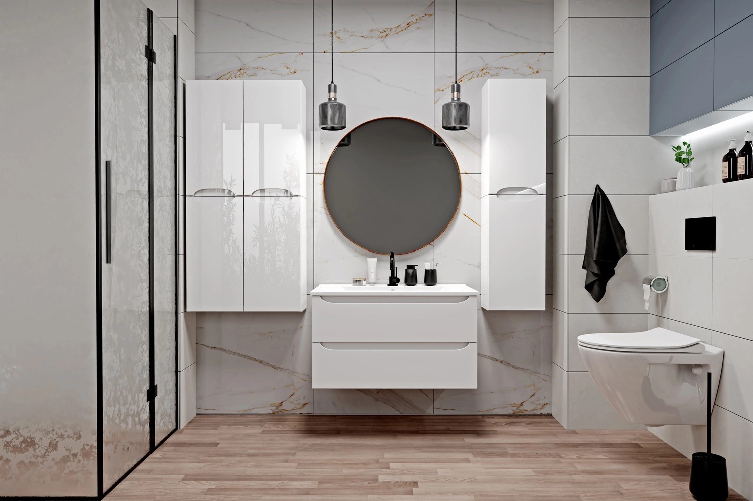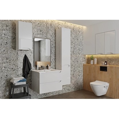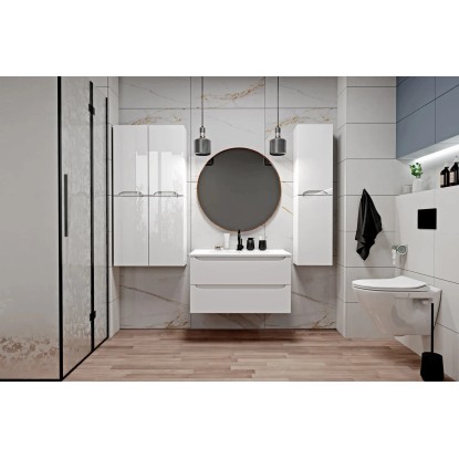 Szafka wyposażona jest w dwie praktyczne szuflady, w których pomieścisz kosmetyki czy akcesoria łazienkowe. Zastosowany system uchwytów oraz cichy domyk prowadnic sprawiają, że szuflady są wygodne do otwierania i zamykania oraz nie wydają w jego trakcie niepotrzebnego hałasu. Szeroka umywalka ułatwia codzienną toaletę i jest łatwa do utrzymywania w czystości.