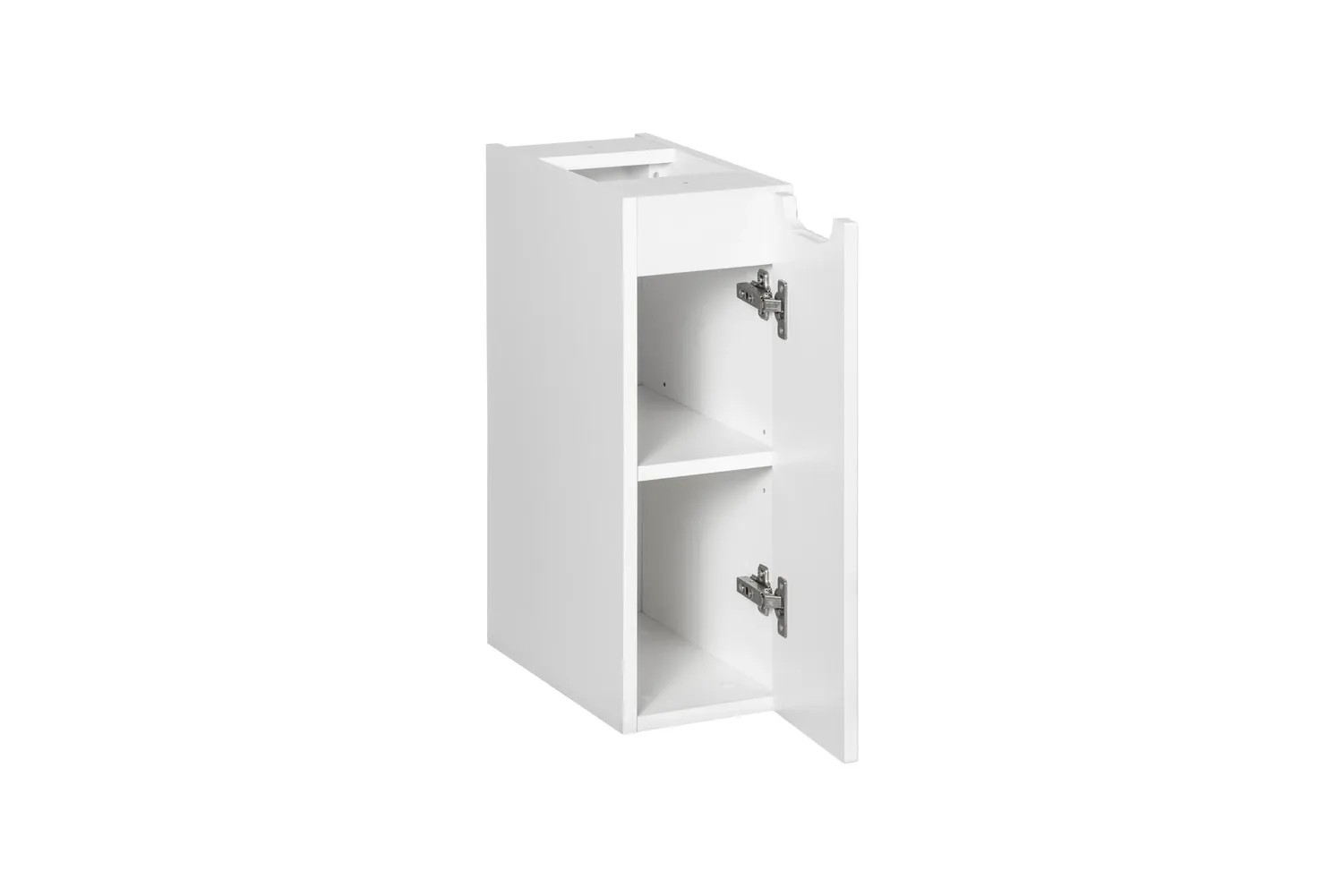 Szafka łazienkowa z kolekcji NOVA to praktyczny i stylowy mebel w eleganckim białym odcieniu. Jej niewielkie rozmiary pozwalają na łatwe dopasowanie nawet do małych łazienek. Uniwersalne drzwi z możliwością montażu po obu stronach zwiększają funkcjonalność. Wykonana z solidnych materiałów, takich jak płyta laminowana i MDF, gwarantuje trwałość i odporność na codzienne użytkowanie. System cichego domyku podnosi komfort, eliminując hałas przy zamykaniu. Mebel można zestawić z innymi elementami kolekcji
