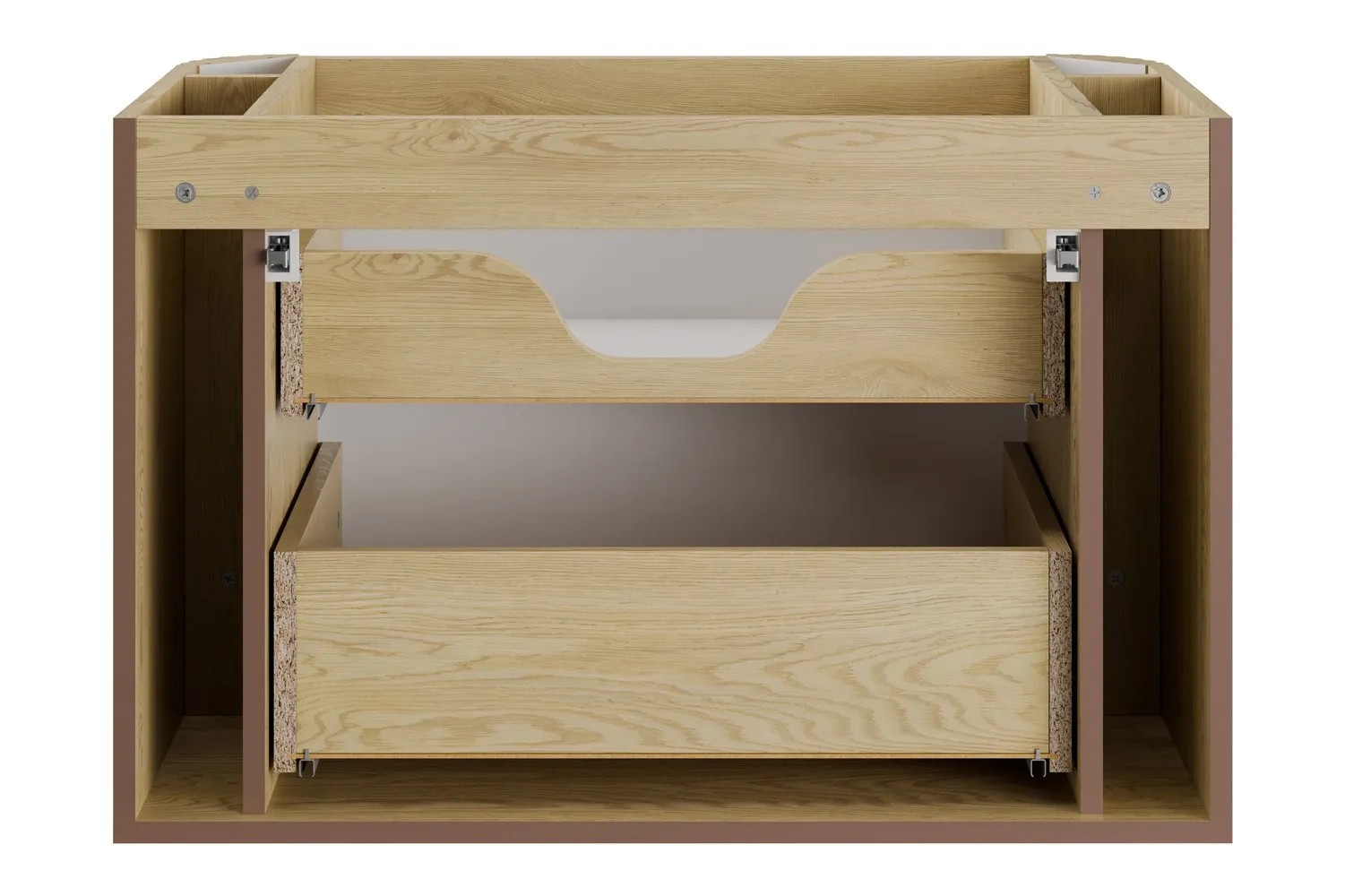 To meble łazienkowe, które łączą nowoczesny wygląd z delikatnymi detalami. Zaokrąglone rogi frontów oraz pionowe ryflowania nadają im lekkości i oryginalnego stylu. Dekor w kolorze Dąb Cremona dobrze odwzorowuje wygląd naturalnego drewna, dzięki czemu meble wprowadzają do wnętrza ciepło i przytulność.
