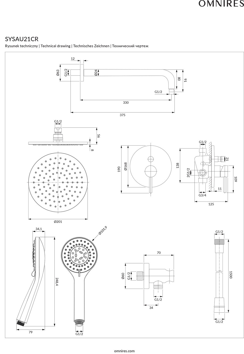 | Rodzaj Akcesoria prysznicowe: | Zestaw podtynkowy prysznica |