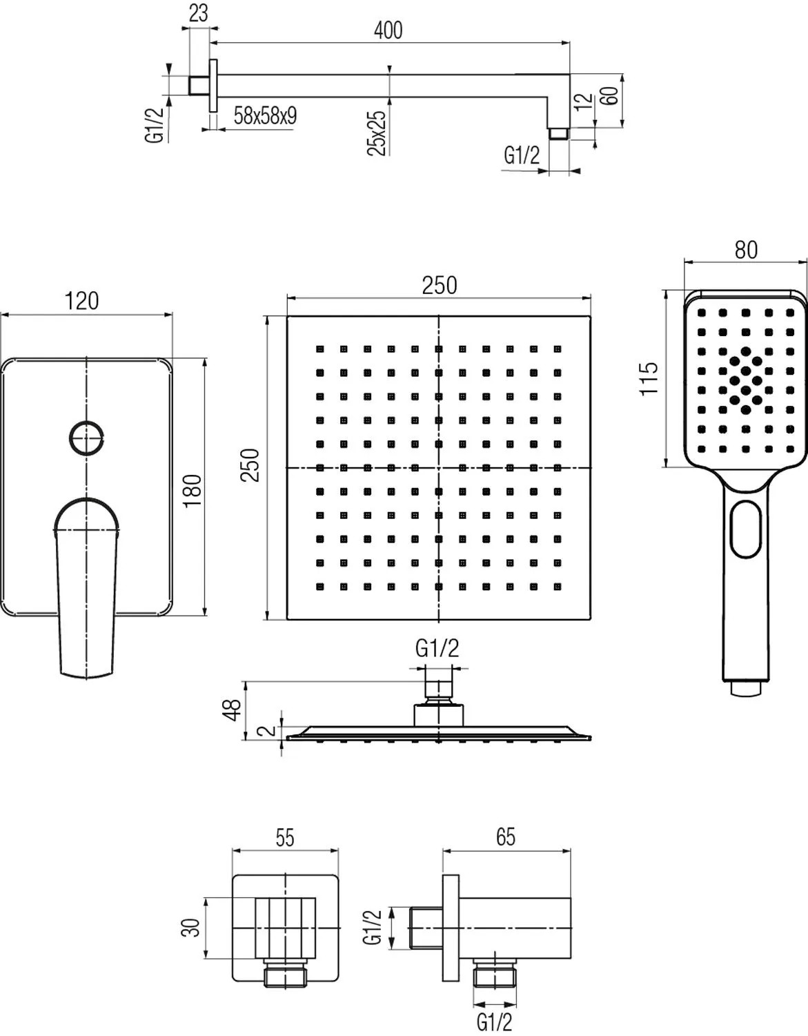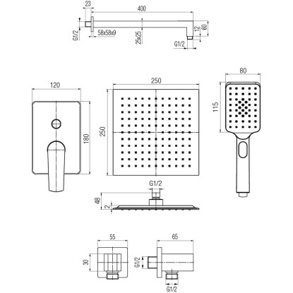 | Rodzaj Akcesoria prysznicowe: | Zestaw podtynkowy prysznica |