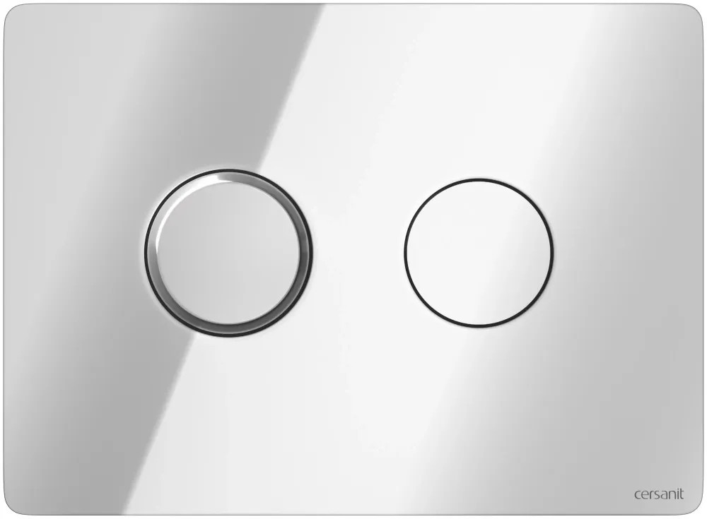 Przycisk pneumatyczny marki Cersanit z klawiszami w kształcie okrągłym w wykończeniu błyszczacy chrom.
