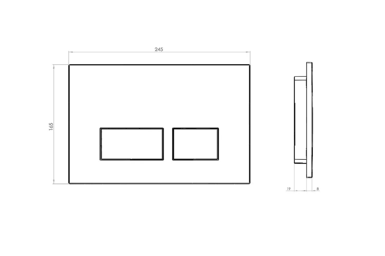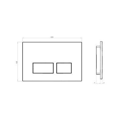 Przycisk w kolorze połyskującego chromu o nowoczesnym wzornictwie, z poziomymi podłużnymi przyciskami spłukującymi, przeznaczony do montażu w stelażach podtynkowych WC.