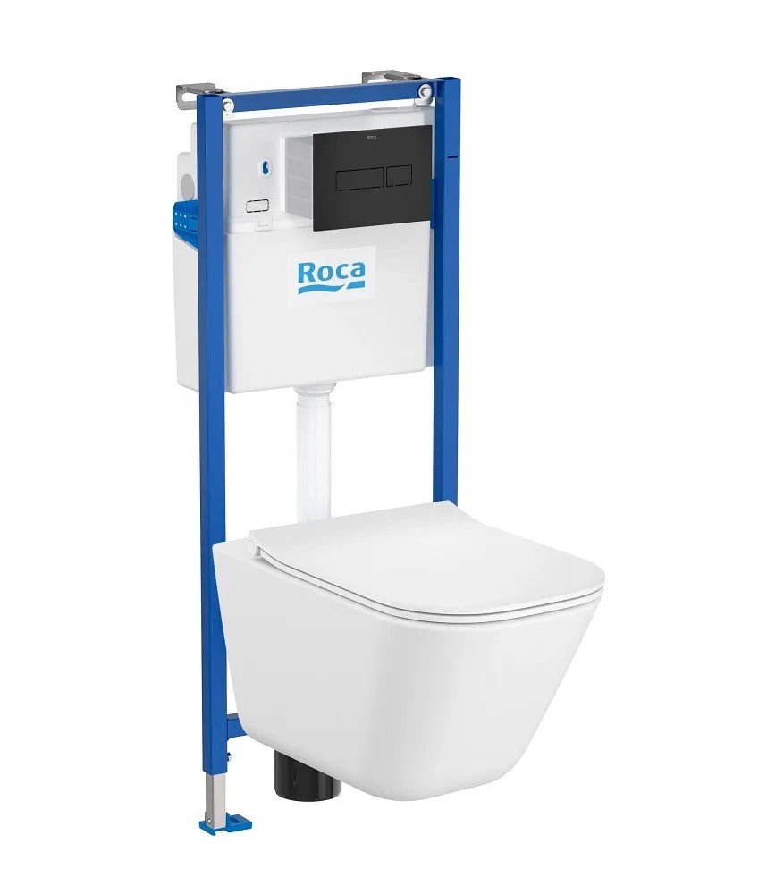Roca Zestaw podtynkowy Soltar Sanit z deską wolnoopadającą, czarnym przyciskiem