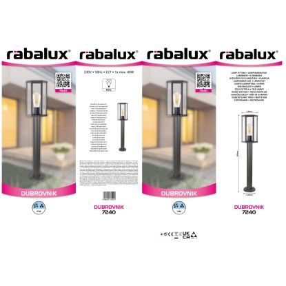 Rabalux Lampa stojąca zewnętrzna Dubrovnik 1xE27 40W IP44 czarna