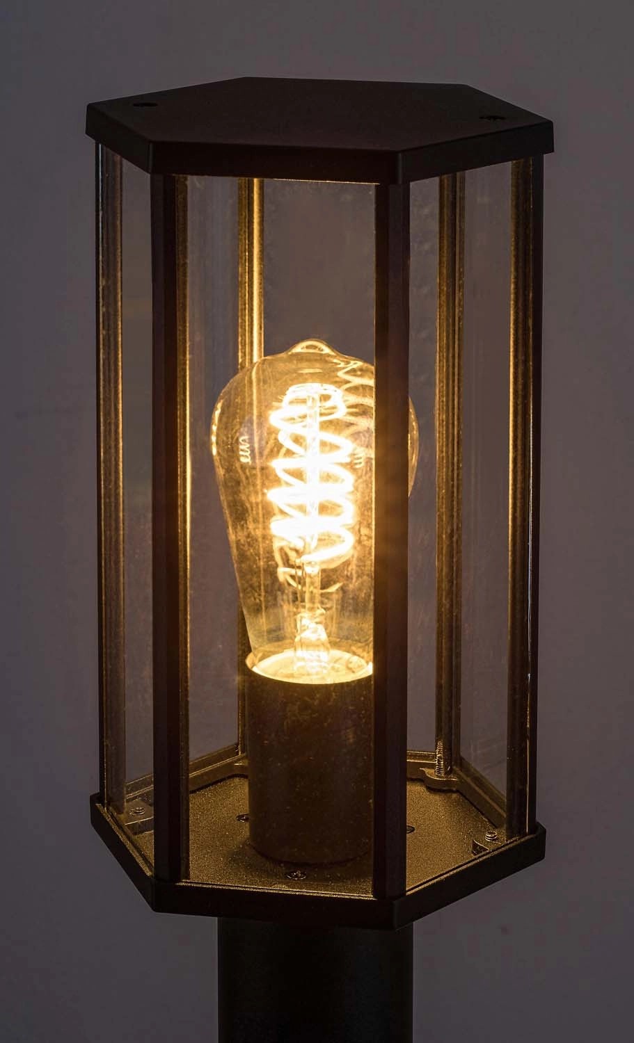 Zewnętrzna oprawa stojąca Dubrovnik może stać się idealnym uzupełnieniem ogrodów w klasycznym stylu. Aluminiowa oprawa w kolorze matowej czerni jest uzupełniona sześciokątnym, przezroczystym szklanym kloszem oraz solidnym słupem zakończonym podstawą w kształcie dysku. Oprawa Dubrovnik będzie idealnym wyborem do oświetlenia ścieżki ogrodowej lub wyeksponowania wyjątkowej rośliny, rabaty kwiatowej.