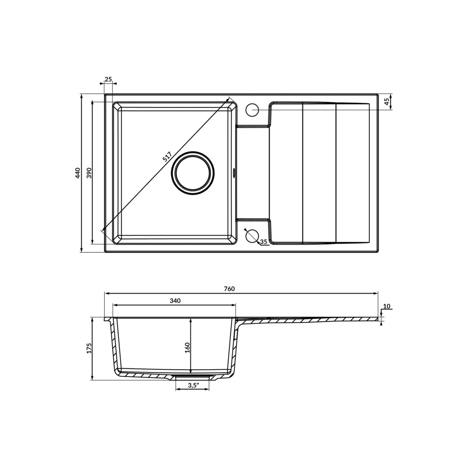 Zlewozmywak Rab 1-komorowy z ociekaczem