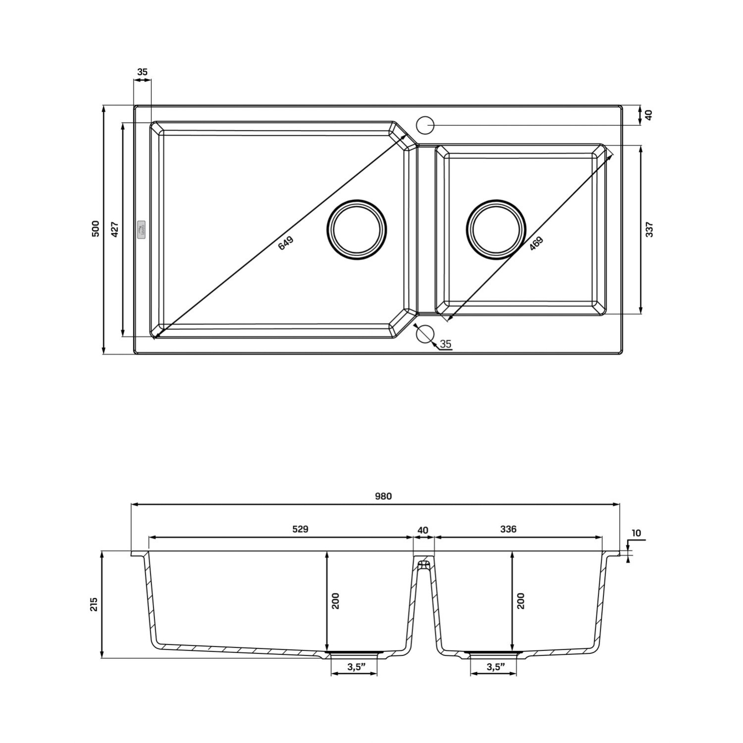 Model MILOS posiada dwie przestronne komory, umożliwiające równoczesne mycie i przygotowywanie posiłków. Zintegrowany przelew i automatyczny korek zwiększają komfort użytkowania, a syfon Space Saving oszczędza miejsce pod szafką, pozostawiając dodatkową przestrzeń do przechowywania. Fabrycznie wycięte otwory pod baterię umożliwiają szybki montaż armatury, a odwracalna konstrukcja pozwala dopasować zlew do układu kuchni.