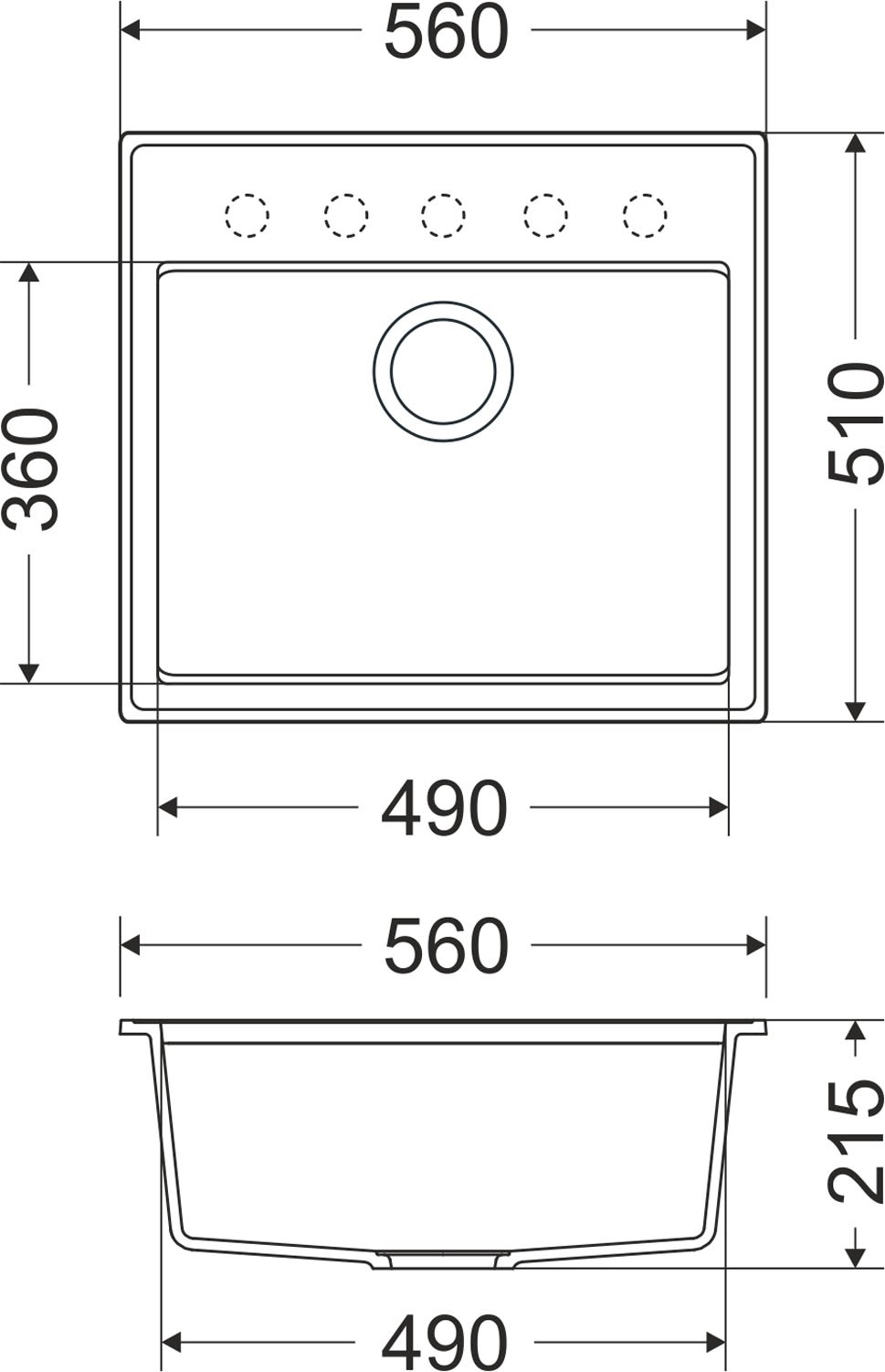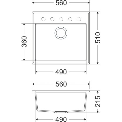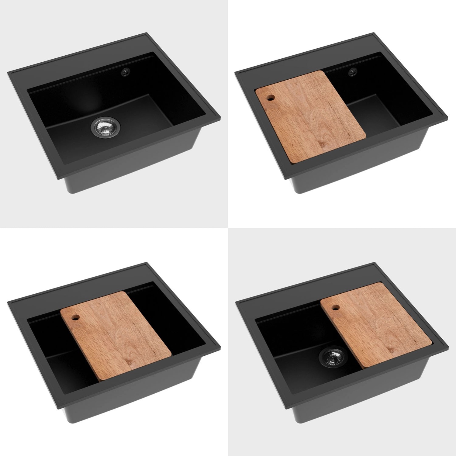 Miló Zlewozmywak BUNA 1-kom. z deską czarny - 56 x 51 cm