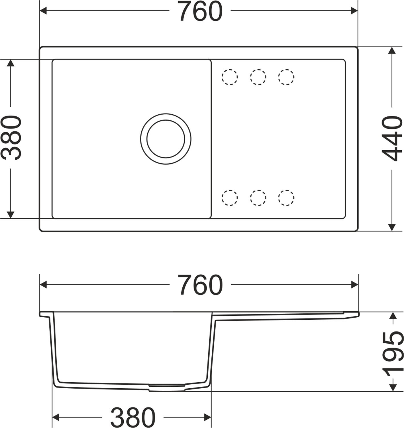 Miló Zlewozmywak KEYA 1-kom. z ociekaczem czarny - 76 x 44 cm