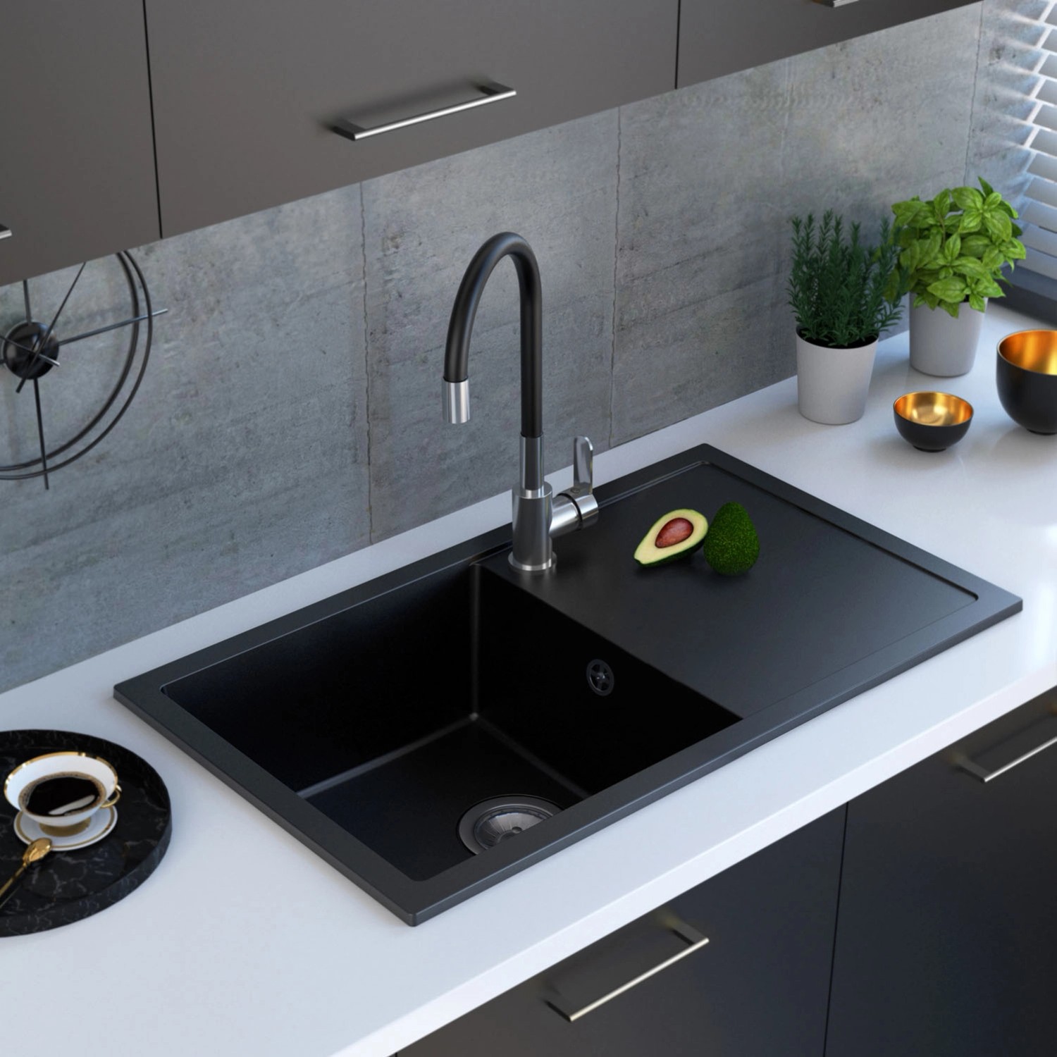 Zlewozmywak Keya 1-komorowy z długim ociekaczem, czarny