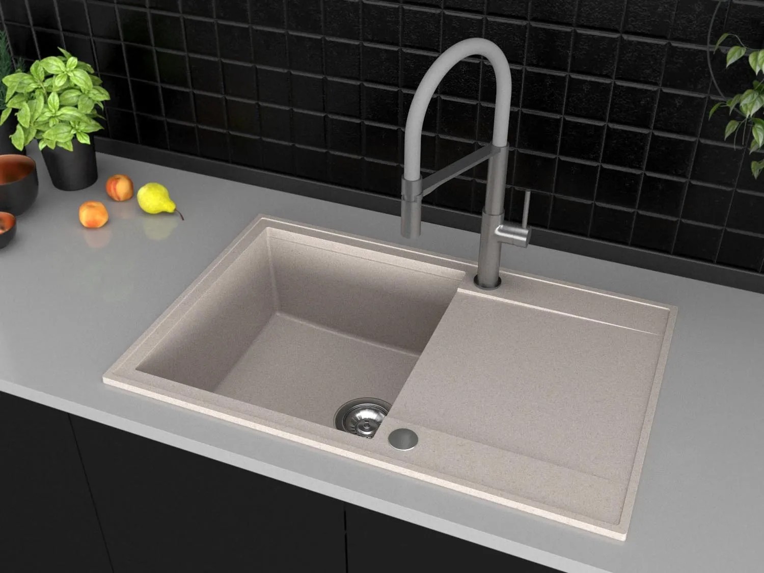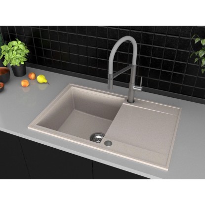 Zlew granitowy 1-komorowy z długim ociekaczem, piasek