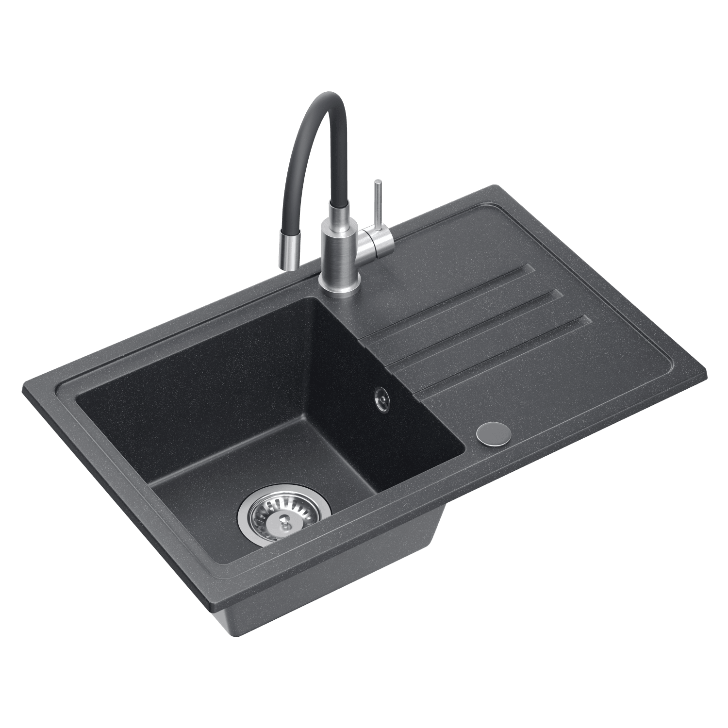 Zlew Eric 1-kom. 70 cm z baterią elastyczną i ociekaczem czarny