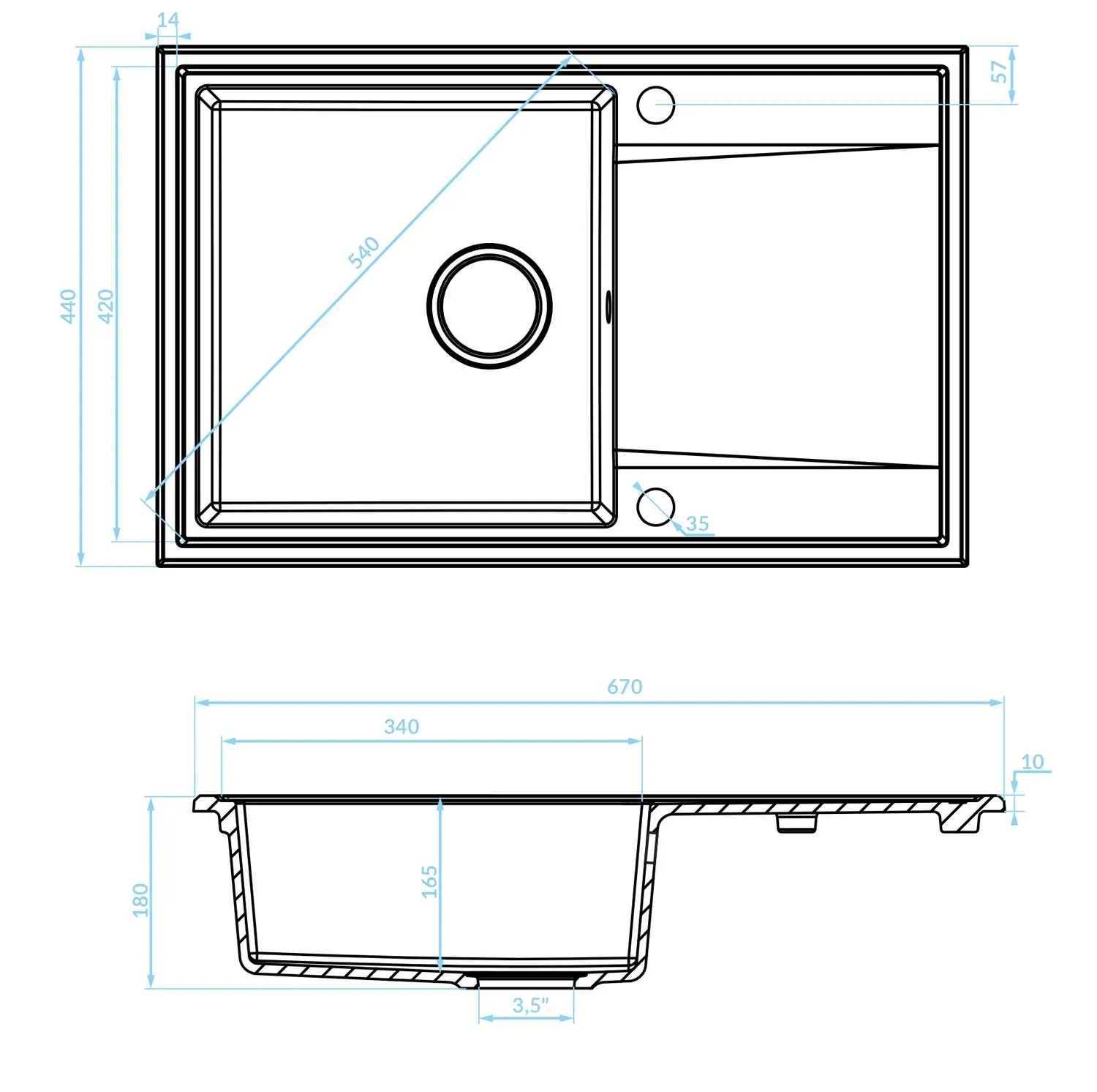 Wykonany z granitu, odporny na zarysowania, uderzenia i przebarwienia zlewozmywak jednokomorowy z powierzchnią ociekową zwiększającą komfort wykonywania prac kuchennych.