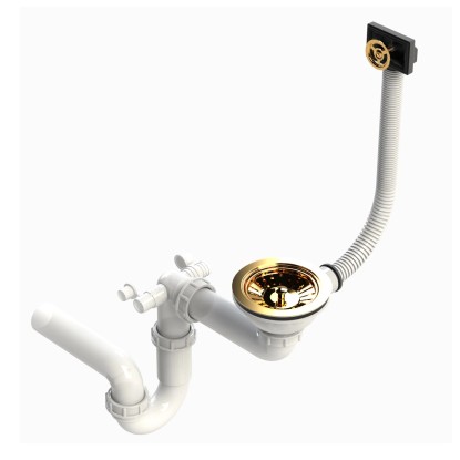 Do zlewu dołączony jest elegancki syfon wykończony w złotym kolorze.