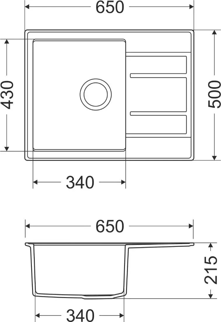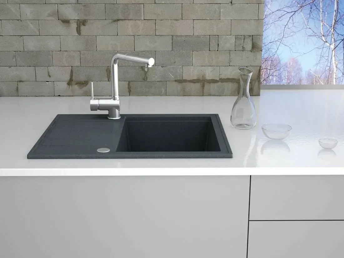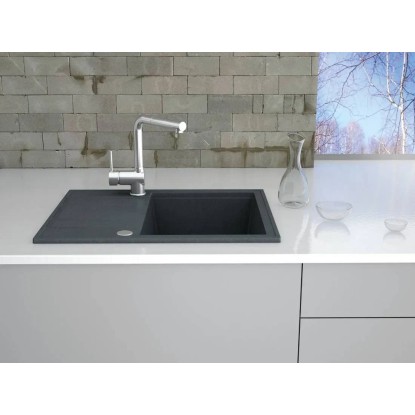 Zlew granitowy 1-komorowy z krótkim ociekaczem, grafit