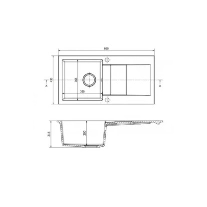 Wykonany z materiału axi-granu, który stanowi połączenie kruszywa i żywicy.