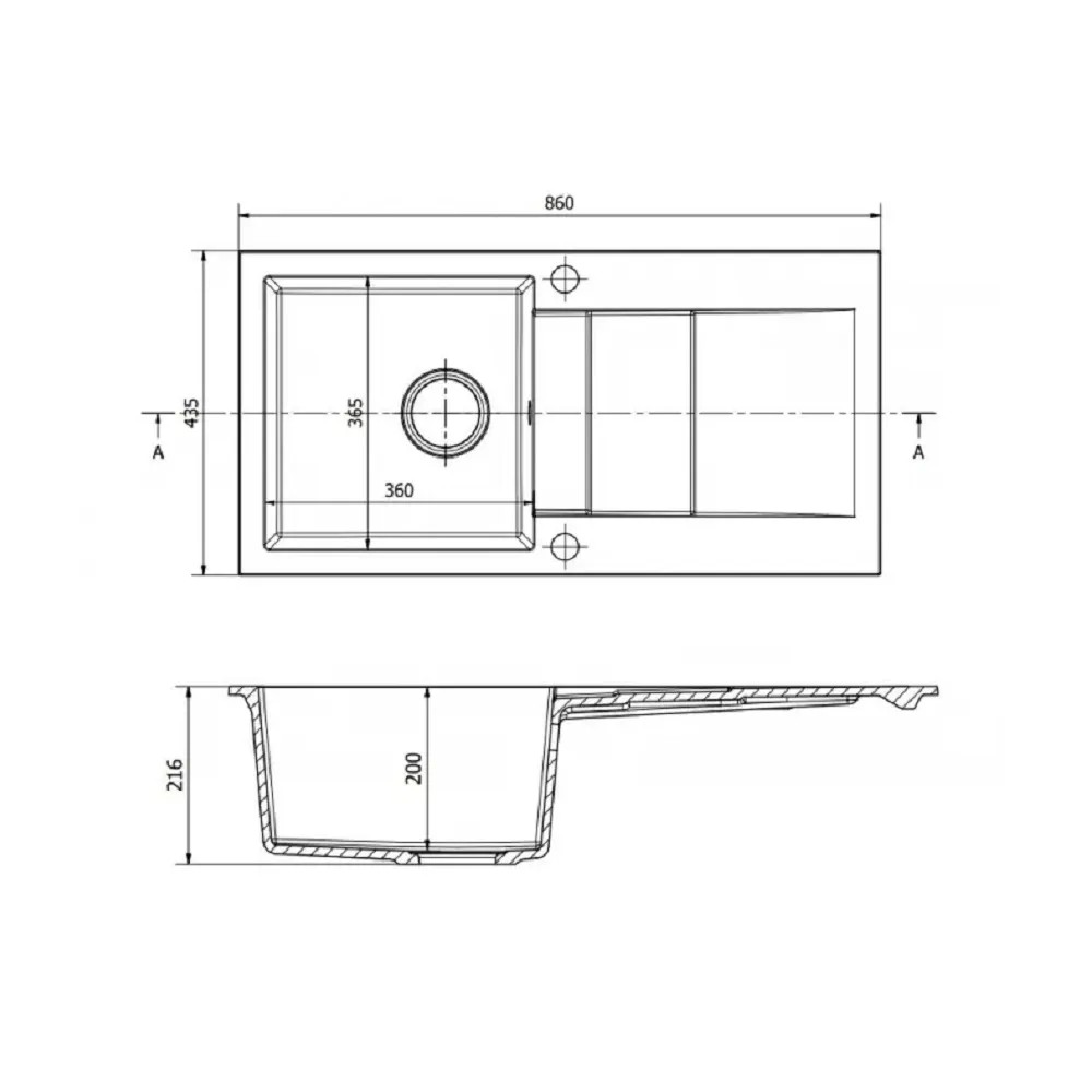 Wykonany został z wysokiej jakości kompozytu o nazwie axi-gran. Materiał ten jest bardzo zbliżony do granitu, dlatego też zlew jest odporny na szkodliwe czynniki, takie jak promieniowanie UV, wysoka i niska temperatura, czy też uszkodzenia mechaniczne. Do tego materiał przez długi czas zachowuje swój oryginalny wygląd.