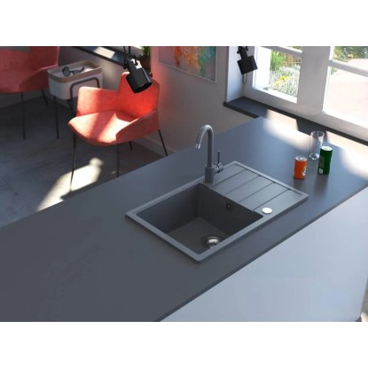 Zlew granitowy 1-komorowy z krótkim ociekaczem, szary