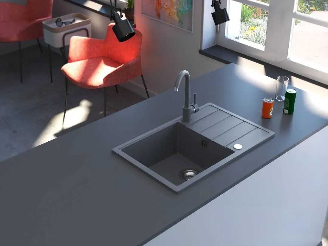 Zlewozmywak Dylan 1-kom. z ociekaczem, szary 68x44 cm