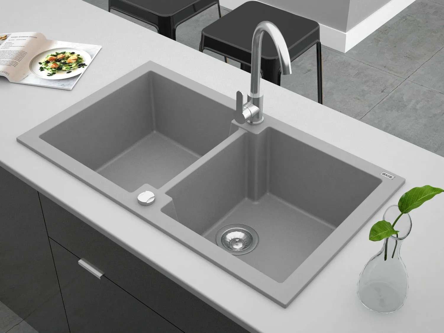 Zlew Honest 160 2-komorowy szary
