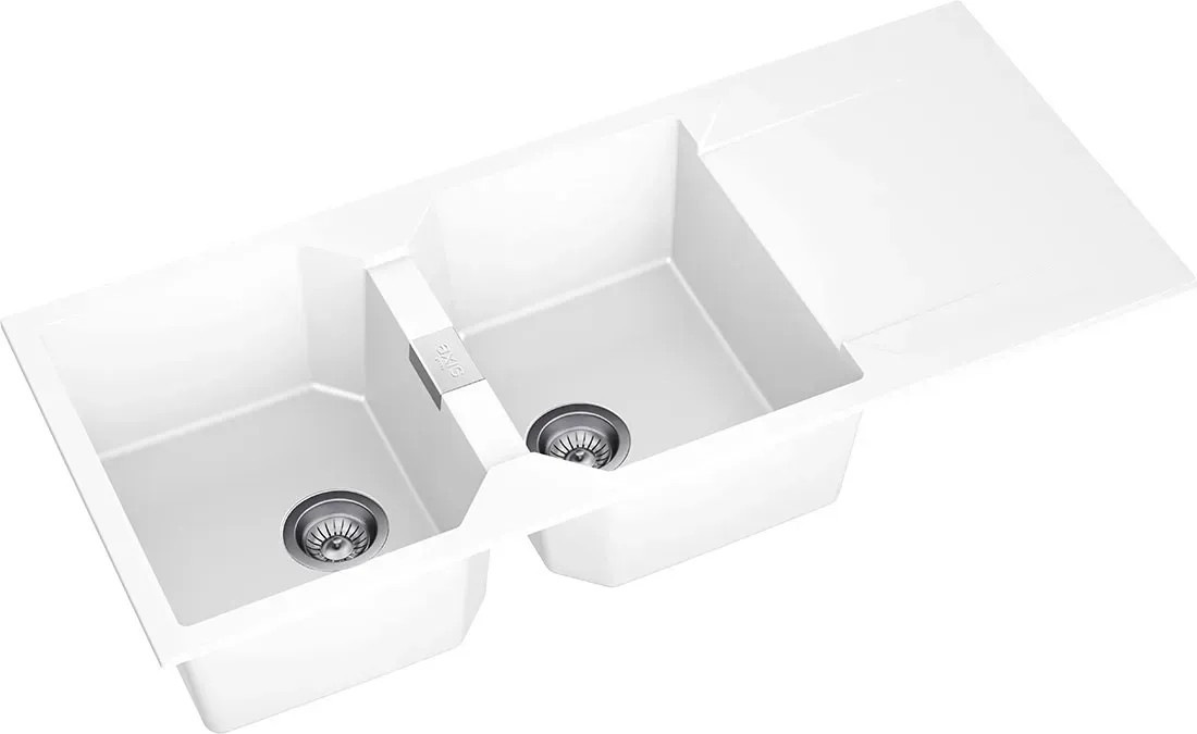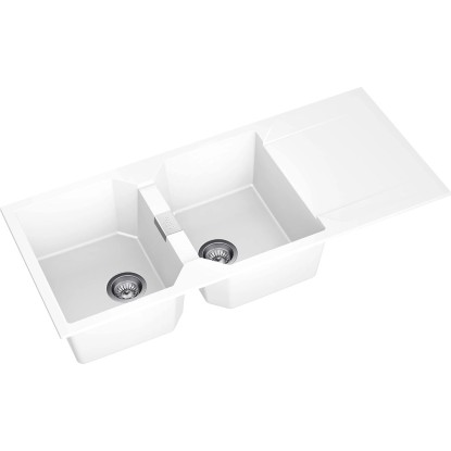 Zlewozmywak Kronos 2-kom. z ociekaczem, biały 116x51 cm