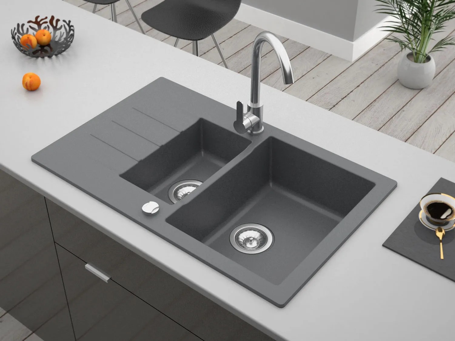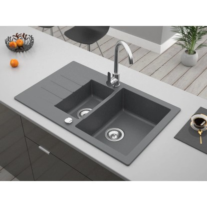 Zlewozmywak Mojito 1,5-kom. z półociekaczem, szary 79x50 cm