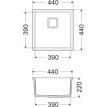 Zlewozmywak Qubus 1-kom. podwieszany, grafitowy 44x44 cm