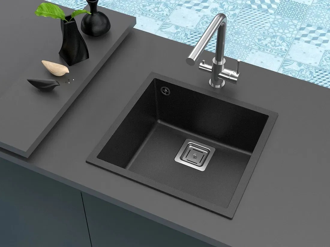 Zlew granitowy 1-komorowy, bez ociekacza, grafitowy