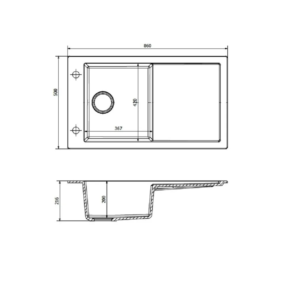 Wykonany został z wysokiej jakości kompozytu o nazwie axi-gran. Materiał ten jest bardzo zbliżony do granitu, dlatego też zlew jest odporny na szkodliwe czynniki, takie jak promieniowanie UV, wysoka i niska temperatura, czy też uszkodzenia mechaniczne. Do tego materiał przez długi czas zachowuje swój oryginalny wygląd.