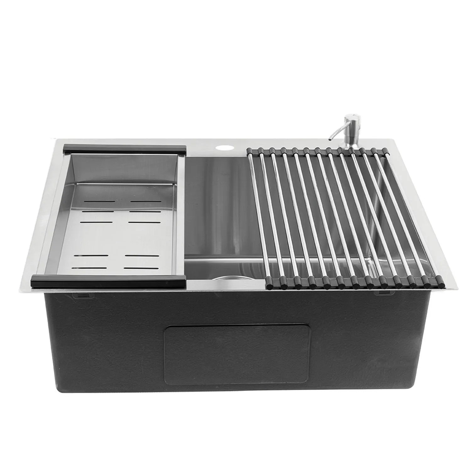 Model wyposażono w zestaw praktycznych akcesoriów. Zwijany ociekacz wykonany z drobnych stalowych prętów umożliwia sprawne odprowadzanie wody z naczyń lub produktów spożywczych. Elastyczna konstrukcja pozwala na jego zwinięcie i przechowywanie, gdy nie jest używany, co przekłada się na oszczędność miejsca. Gumowe zakończenia elementu zabezpieczają powierzchnię zlewu przed uszkodzeniami mechanicznymi i zarysowaniami.