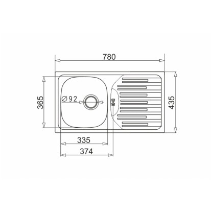 Pyramis Zlewozmywak ET78 FORK 1-kom. z ociekaczem stalowy len - 78 x 43,5 cm