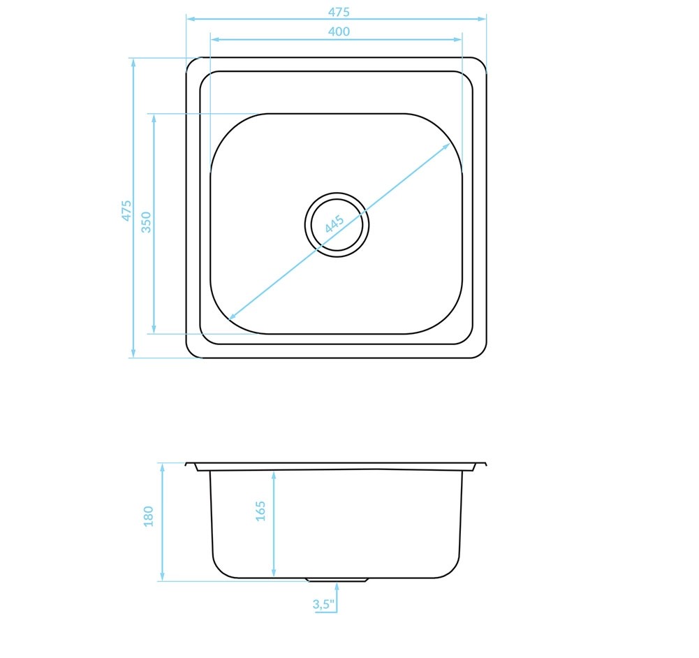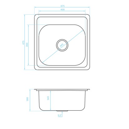 Zlewozmywak Standard 1-kom. 47,5x47,5 cm